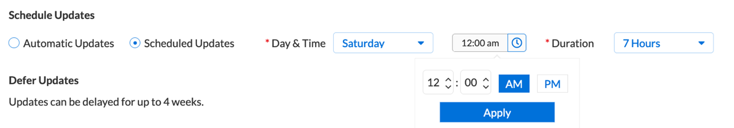 Here, you will pick the best time to schedule updates based on your organization’s best availability. Very few updates require down time, but this would be a great way to cycle between multiple systems if downtime is required. All updates are communicated with organizations many days in advance.