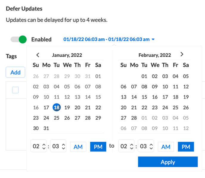 The first questions that organizations might ask is: What if I need updates to happen at a certain time to prevent load on our systems, or what if we need to control system updates at different times for different GEO locations?