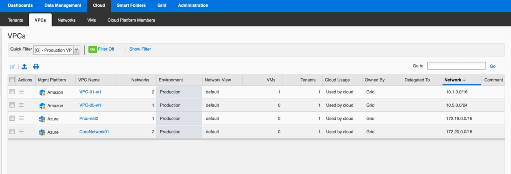 Importing resource tags from Azure and AWS into your Infoblox grid provides new ways to filter your IPAM data. The extensible attributes which hold this tag metadata can be used to create filters and Smart Folders to organize views of your IPAM data. This is especially useful in hybrid and multi-cloud environments where there are many networks and things can change quickly.