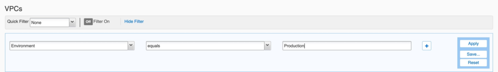 Repeat the same steps to create filters for all values of the EA. After creating filters for all values, you can select these to view your filtered data. For example, the view below shows only Production cloud networks.