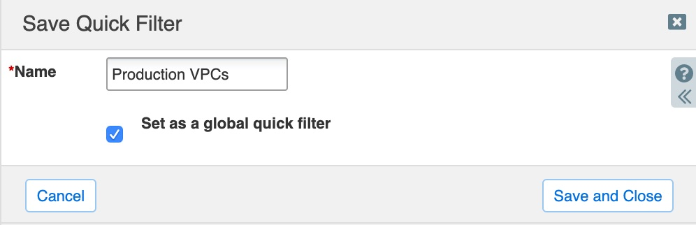 Click Apply, or, Save to make the filter available for later use as well. In the Save Quick Filter window, name the filter and optionally select “Set as a global quick filter” to make it available for all users.