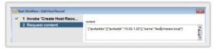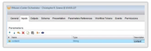 In our environment this workflow is actually called from another workflow that builds the content string from values extracted out of a vCloud Director VM. Depending on your use case, you may need to modify this workflow so that it takes a hostname/IP address and then builds the content string.