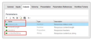 The variables statusCode and contentAsString are stored in the scripting elements output:
