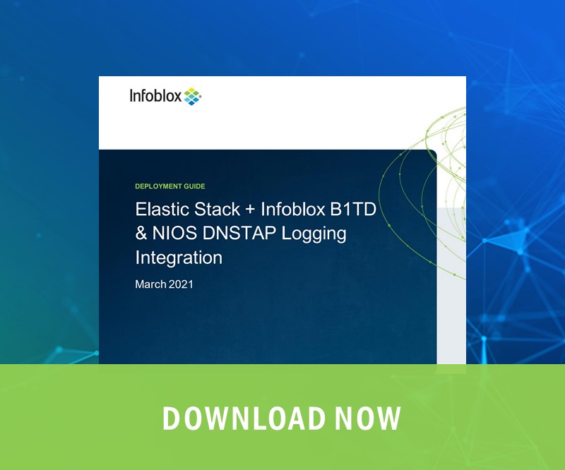 The Infoblox Integration with Elastic Stack deployment guide is intended to provide an introduction into the power of using Elastic to enhance the rich data provided by Infoblox products. Within it you will find two separate but similar integrations: First, instructions on integrating your most recent DNS security data from BloxOne Threat Defense. Second, instructions on integrating dnstap logs from NIOS, a high performance query/response logging method. The two integrations are mutually exclusive to demonstrate Elastic’s ability to ingest all kinds of logs.