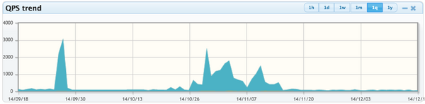 The graph, which you can see below, was produced in my analytical system. It shows maximum QPS.