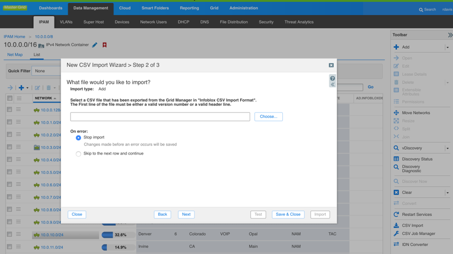 To import your own similar file go to Data Management/IPAM/(toolbar on the right) CSV Import.