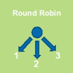 - Round Robin: Directs client traffic to servers in a pool or among pools (in a multiple pool configuration) using an equal weighting.