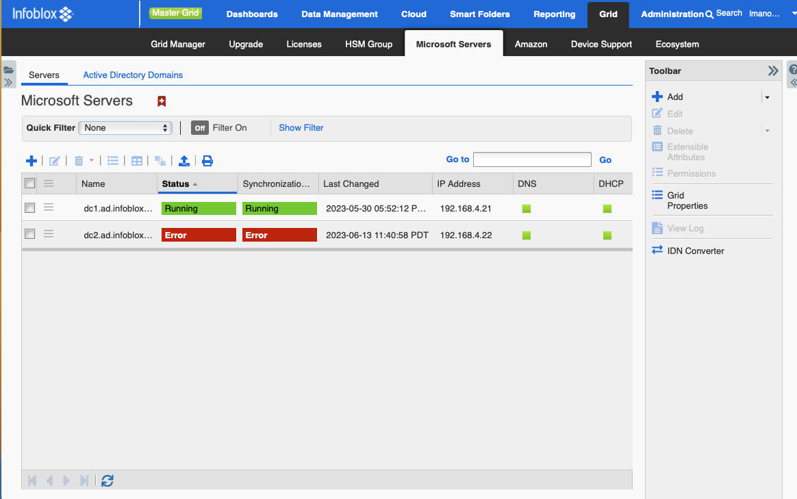 Partnering with Microsoft, Infoblox allows you to retain your existing Microsoft-based DNS/DHCP servers, solve IPAM limitations and challenges and adapt to new technologies. Extending the capabilities of your Microsoft solutions in this way enables you can keep pace with increased IP address, demand, scalability, redundancy and security needs. Plus, you don’t have to manage multiple logins for multiple AD forests.