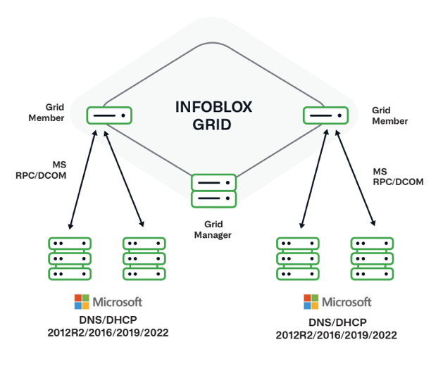 Infoblox Microsoft Management provides a non-intrusive overlay with no installed agents, leveraging the native program calls used by Microsoft. All DNS changes made through Microsoft are automatically reflected in Infoblox with bi-directional synchronization. It provides complete visibility across Microsoft and non-Microsoft domains from a single UI: