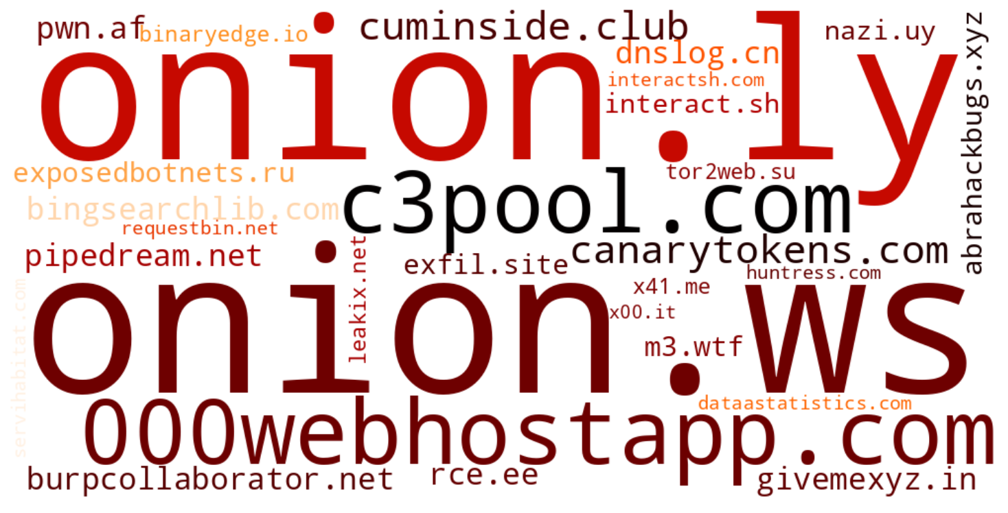 | A selection of some of the most common domain names seen associated to log4shell activity. |
