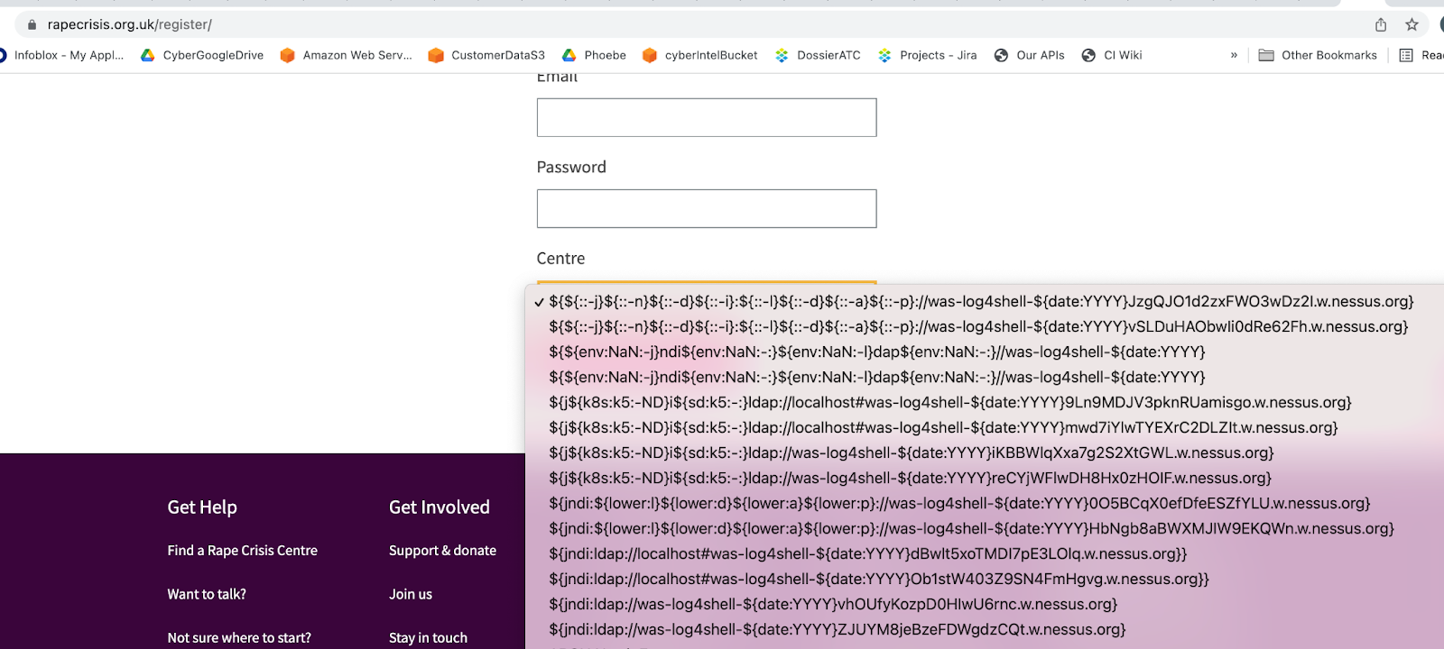 | Figure. Log4shell targeting of a rape crisis center website. |