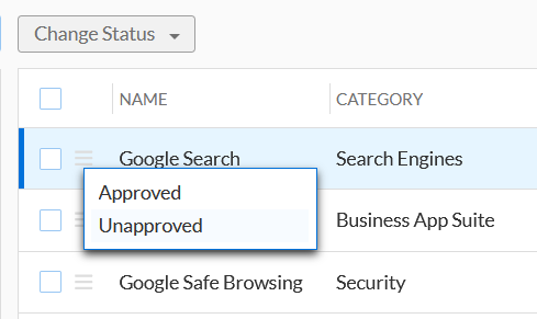 By clicking on the hamburger icon of any application we can choose to assign it as Approved, or Unapproved. Note that this action alone does not designate whether or not a device can access this application, but it helps us filter on the summary page. This information can prove to be invaluable for security teams in helping them in their investigation and response activities, reaching compliance, and monitoring both Shadow IT and insider threats.