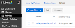 On this page we can see a couple predefined Application filters: All Approved Applications and All Unapproved Applications. As you’d guess, these filters are populated with the approved and unapproved applications from BloxOne’s Application Discovery.
