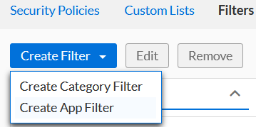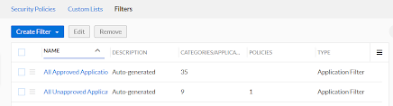So let’s say you’d like to block all unapproved applications, or maybe log all email usage. Well, application filters can help accomplish that. Navigate to Policies → Security Policies → Filters (tab).