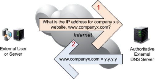 External Authoritative DNS provides the same type of lookup service for DNS domains and DNS records that are publicly available on the Internet. For a customer to reach a specific company’s public facing website or send an email to this company, the company’s external authoritative DNS servers must be queried. The query responses provide the corresponding IP addresses to be leveraged by the customer’s workstation or mobile device to establish the connection.