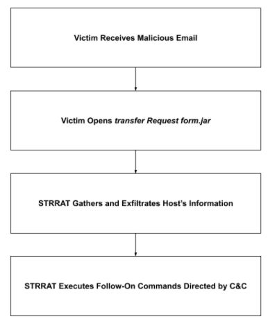 STRRAT is a Java-based remote access trojan (RAT) that is delivered in malicious email campaigns. Although Java runs on all operating systems, STRRAT is compatible only with Windows hosts. STRRAT can exfiltrate passwords to a command and control server (C&C), run code on infected hosts, enable attackers to control infected hosts directly, and create reverse proxies. In addition, it has a rudimentary ransomware module.1