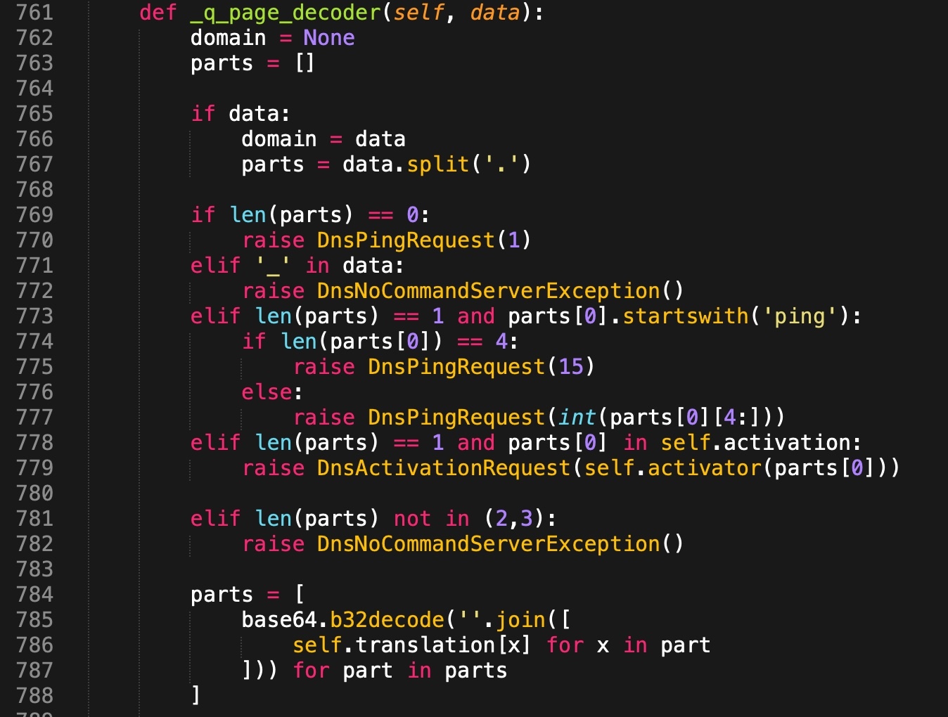 Figure 13. Pupy 2-3 label FQDN parsing from _q_page_decoder() function.