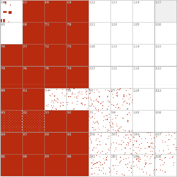 Figure 9. Zoomed in version of Figure 8, to show the repeating 8×8 pattern of Decoy Dog IPv4 resolution.