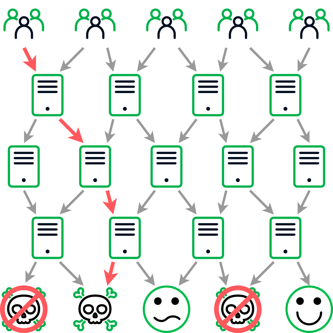 | Figure 5 – If enough of a TDS’s infrastructure is blocked, there aren’t enough domains left to direct traffic to the desired destinations |