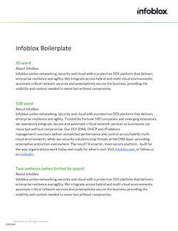 Download the 25, 50, 90 and 150-180 word copy blocks of the Infoblox boilerplate statement here.