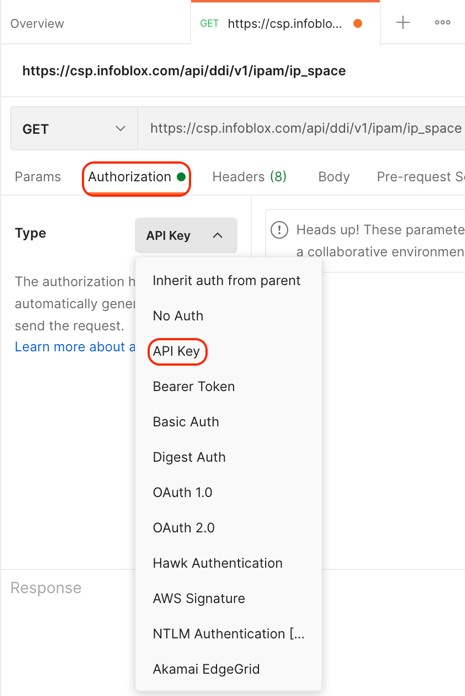 curl --location --request GET 'https://csp.infoblox.com/api/ddi/v1/ipam/ip_space' \ --header 'Authorization: Token <api-key>'