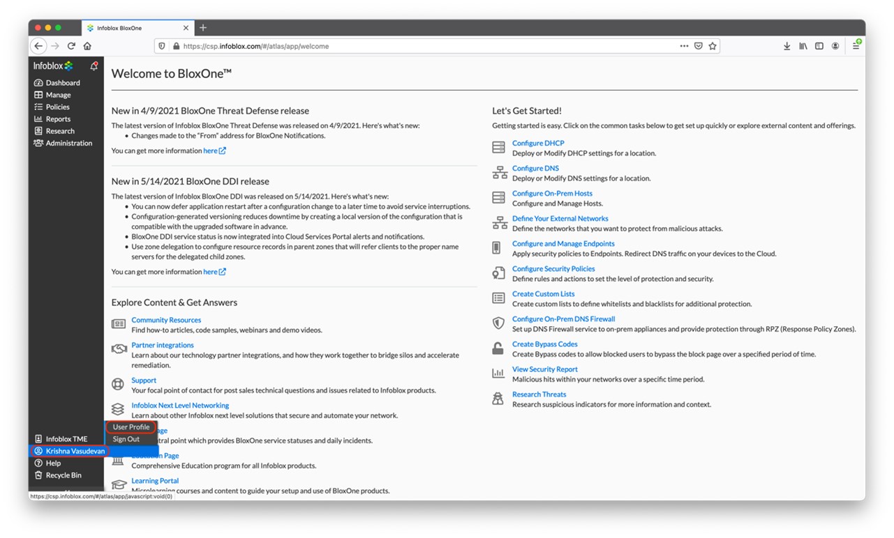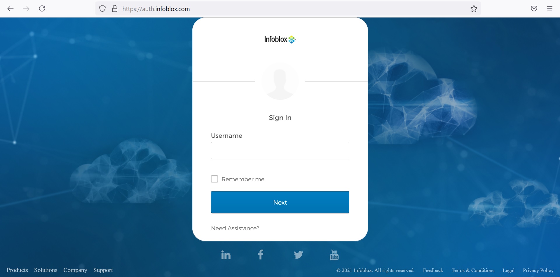 Kontaktieren Sie Ihren Vertriebsmitarbeiter bei Infoblox, um ein BloxOne-Konto zu erhalten.