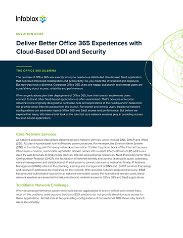 Im Gegensatz zum Branch-Networking verbindet BloxOne DDI Anwender mit dem nächstgelegenen Zugangspunkt in der Cloud. Das bedeutet, dass Office 365 und alle Ihre SaaS-Anwendungen in der Geschwindigkeit des Geschäftsbetriebs laufen.