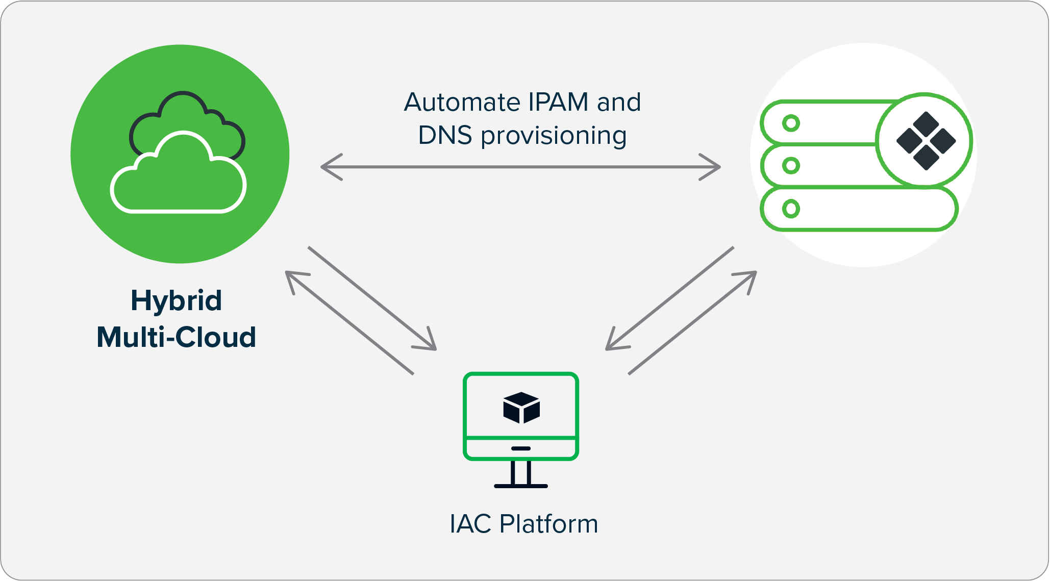 Infoblox-Plugin für Infrastructure-as-Code-Plattformen wie Hashicorp Terraform erweitert die IP-Adressverwaltung und DNS-Dienste auf Virtual Private Clouds (VPCs), virtuelle Netzwerke (VNets) und virtuelle Maschinen (VM) über Cloud-Plattformen hinweg.
