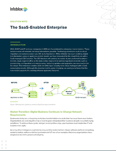 Die Cloud-native Technologie ist schneller gereift als die Anpassung durch Unternehmen, wodurch ein Wettlauf um die Vorteile von Infrastrukturoptimierung und DevOps-Pipelines entstanden ist. Mit BloxOne® DDI und BloxOne Threat Defense bietet Infoblox ein wichtiges Bindeglied in Ihren laufenden Modernisierungsmaßnahmen, um die Produktivität Ihres Teams zu steigern, Risiken zu verringern und die Sicherheit zu verbessern.