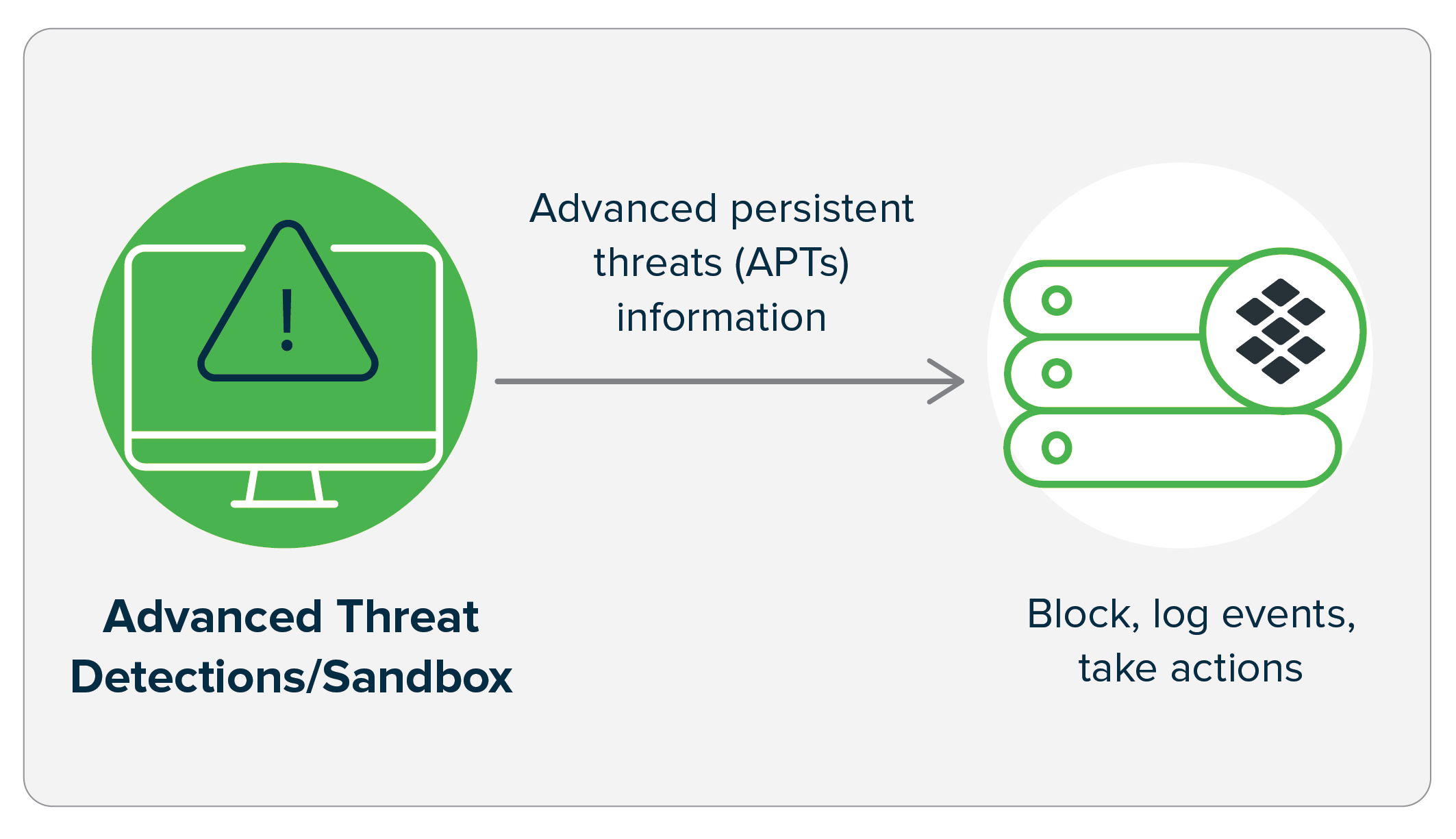 Al compartir la visibilidad temprana de las amenazas, las direcciones IP autorizadas y los datos contextuales de la red, como la atribución de usuarios y dispositivos, con las herramientas de red y seguridad existentes, las integraciones rompen los silos y refuerzan toda la pila de seguridad de TI.