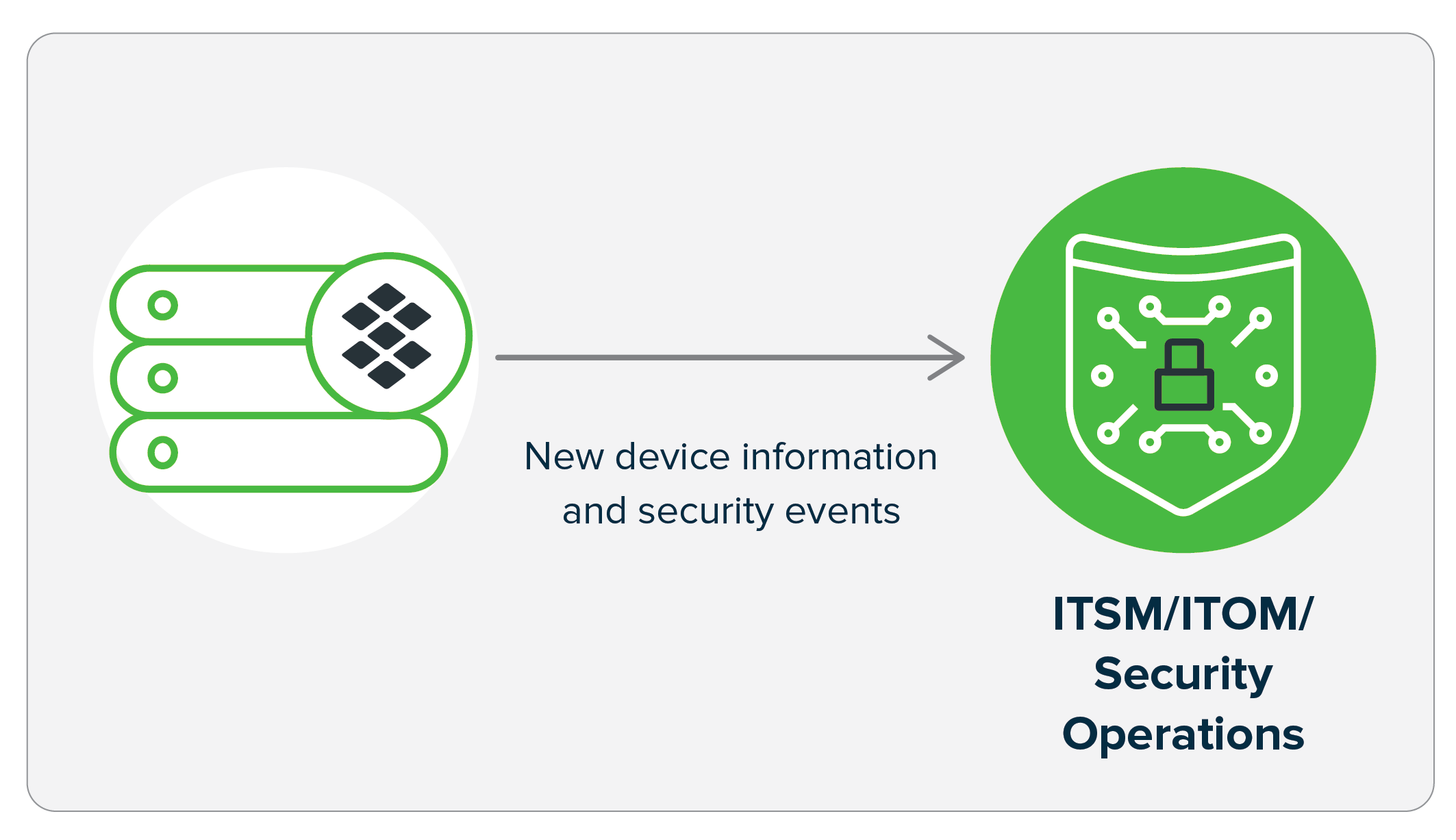 Infoblox genera automáticamente una incidencia de TI cuando nuevos dispositivos se unen a la red o se detectan eventos maliciosos, junto con información detallada del dispositivo y del usuario. Infoblox también proporciona esta información a las herramientas de comunicación de TI. Los administradores de red y seguridad obtienen una vista consolidada de toda la información de dispositivos y eventos que descubre Infoblox.