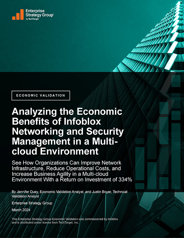 En este nuevo informe de investigación de ESG, descubra por qué las organizaciones con los procesos de gestión híbridos y multinube más maduros logran mejores resultados empresariales demostrables.Análisis de los beneficios económicos de la gestión de redes y seguridad de Infoblox en un entorno multinube