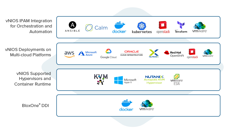 Infoblox simplifica y proporciona una gestión centralizada de servicios de red críticos, DNS, DHCP y gestión de direcciones IP (DDI) en entornos públicos/multinube a través de integraciones integradas con los principales proveedores de nube, incluidos Amazon Web Services (AWS), Microsoft Azure y Google Cloud Platform (GCP).