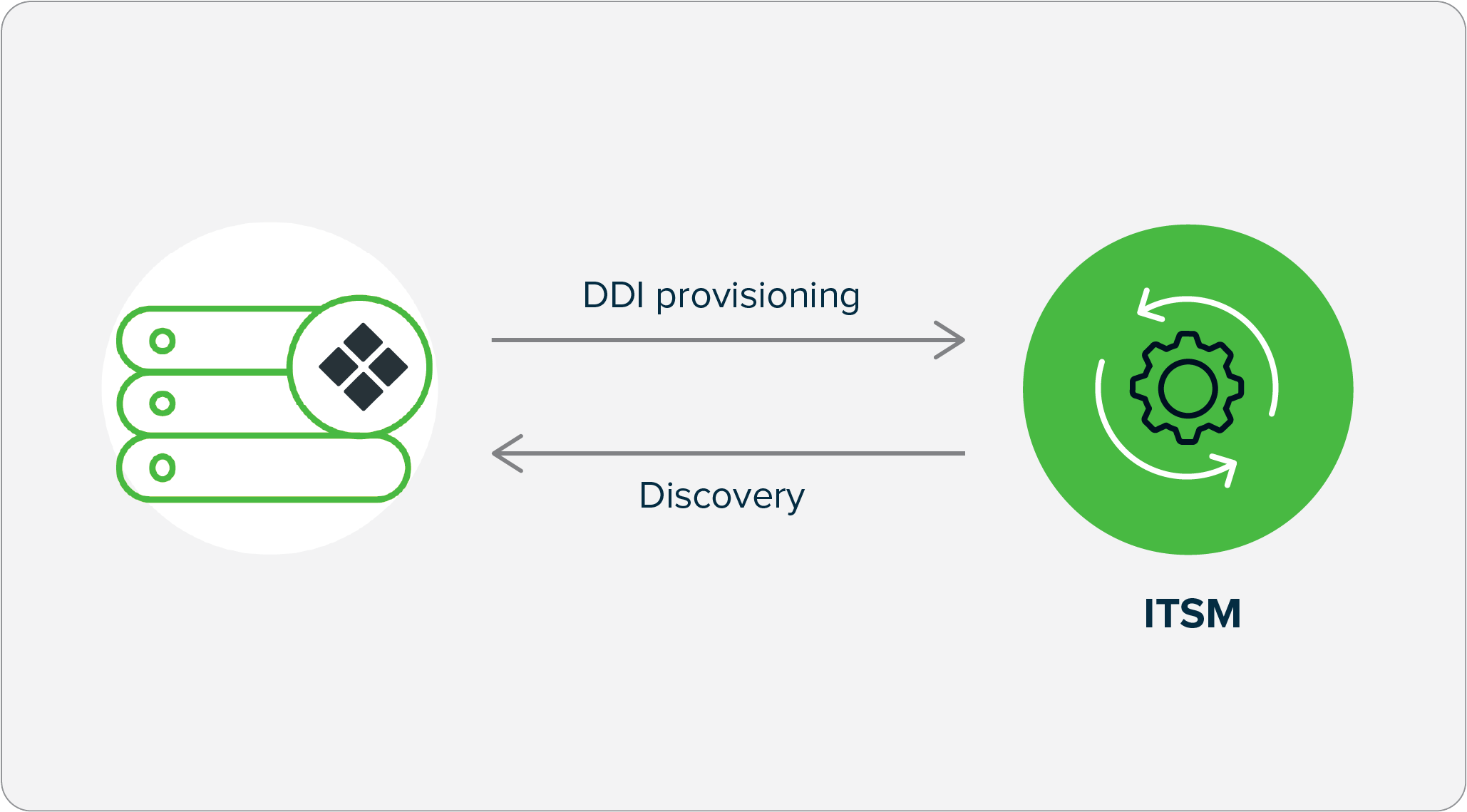 Infoblox envía información sobre nuevos dispositivos, redes y direcciones IP a las herramientas de ITSM. Los administradores de red y seguridad obtienen una vista consolidada de toda la información de dispositivos y eventos que descubre Infoblox.