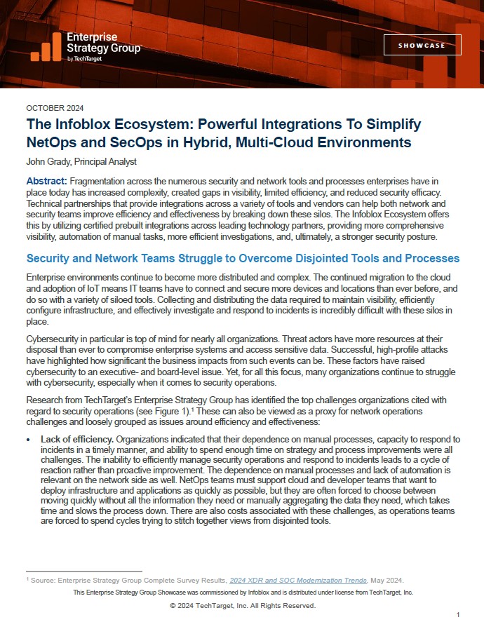 Administrar una gran cantidad de herramientas de seguridad en silos y responder a innumerables alertas puede ser abrumador para los equipos de SecOps. Las integraciones del Ecosistema de Infoblox simplifican las operaciones al mejorar la detección de amenazas, automatizar los flujos de trabajo y mejorar las capacidades de respuesta en entornos locales, híbridos y multinube.