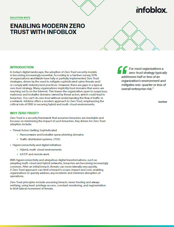 Le DNS soutient la segmentation, l'accès basé sur l'identité et l'application des politiques dans le cadre d'une architecture Zero Trust moderne.