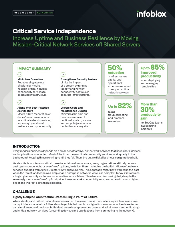 Increase Uptime and Business Resilience by Moving Mission-Critical Network Services off Shared ServersUse Case Brief
