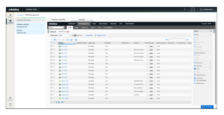 Universal DDI Management can also simplify management of NIOS DDI services. Teams can fully manage distributed NIOS IPAM and DNS objects from the same unified cloud-native interface, replacing the need for multiple points of control for Infoblox DDI services.
